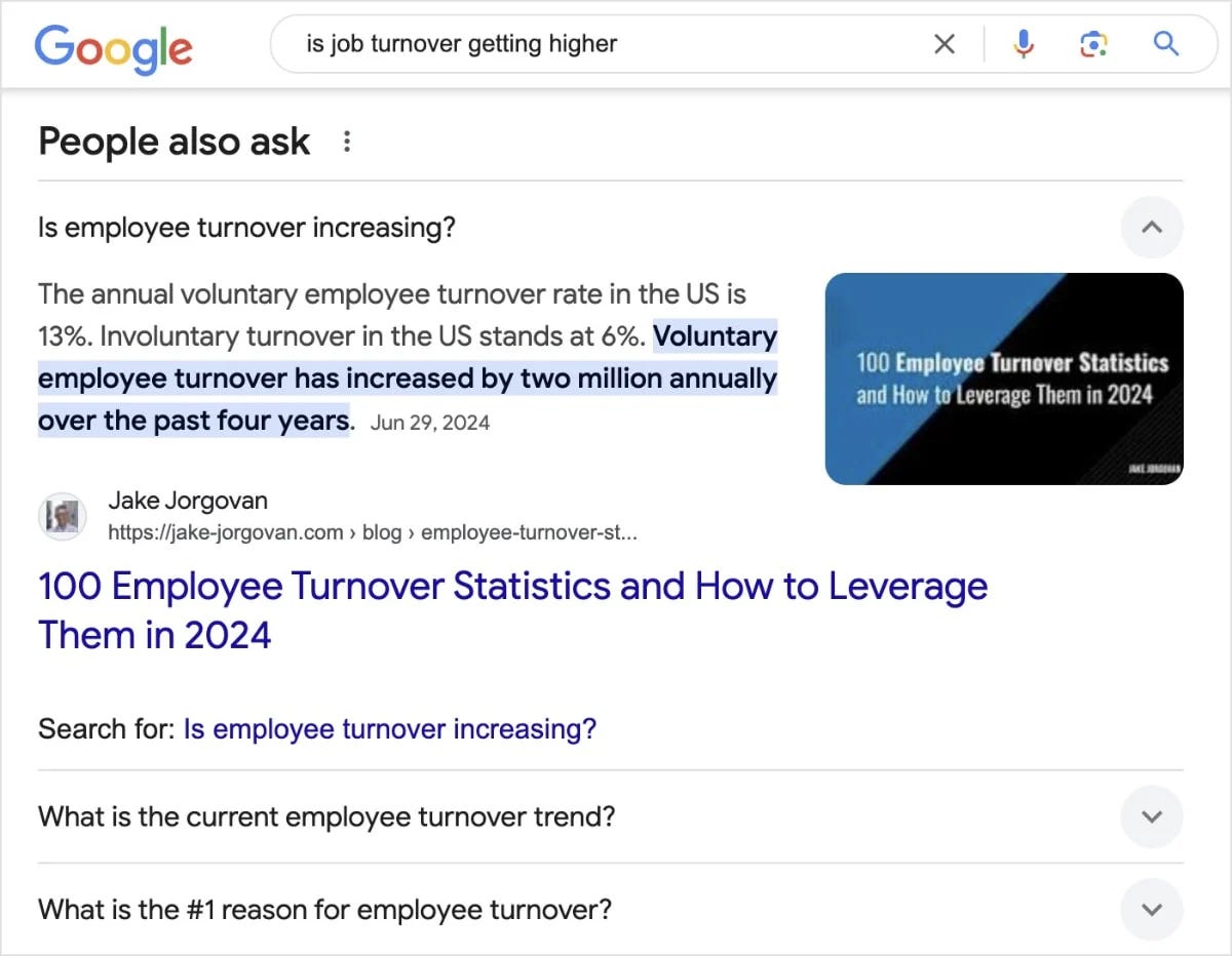 Jake s’est positionné sur 761 mots-clés dans les “Things to Know” et “People Also Ask”. Clics en rafale !