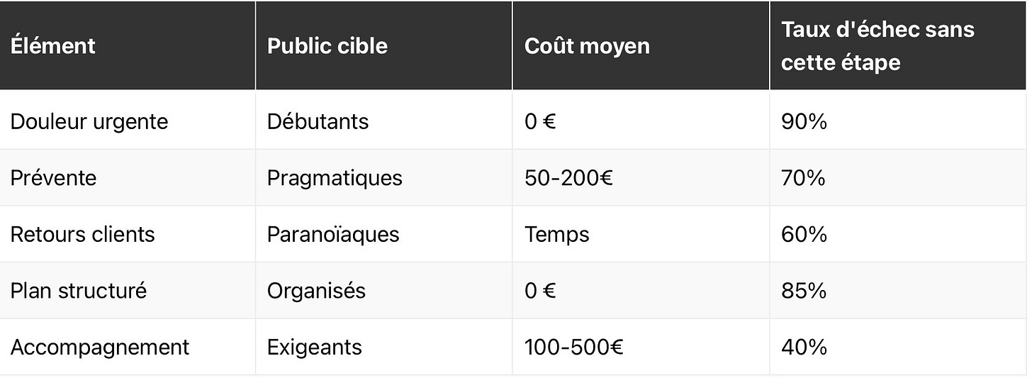 Mais puisque tu tiens absolument à claquer six mois sur un chef-d'œuvre pour 3 likes et un "super contenu !" (traduction : jamais je mettrai un centime là-dedans), permet-moi de t'offrir gracieusement les 5 étapes pour éviter l'échec magistral.
