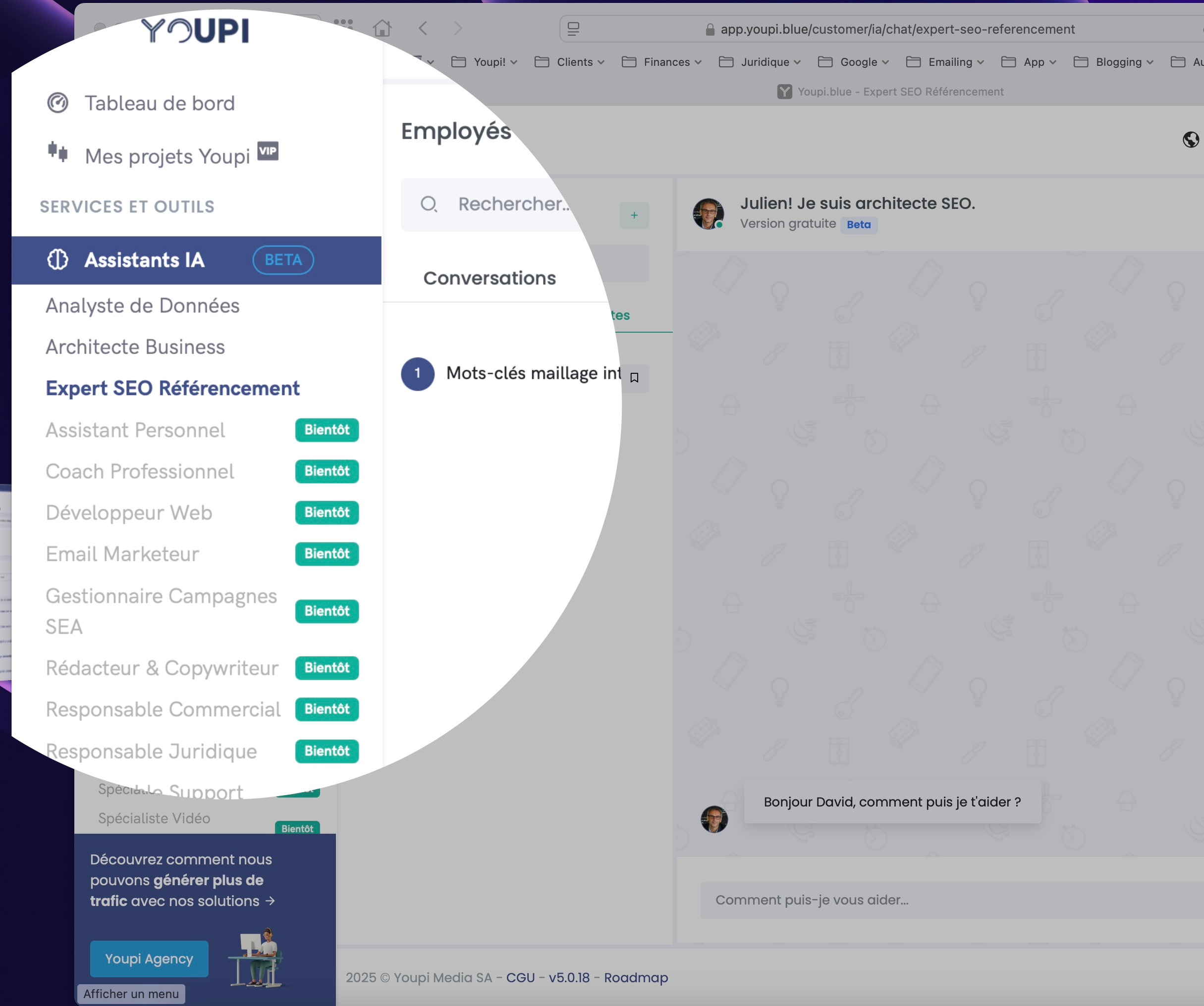 Vous rêvez d’un copilote IA pour tout déchirer en SEO, business ou data ? Youpi Blue® est là, et c’est GRATUIT ! 🎉