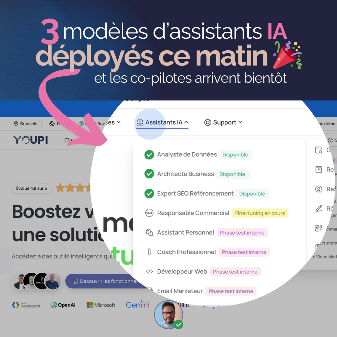 Ce matin, un grand pas a été franchi chez Youpi Media®. Après des mois de travail acharné, je suis hyper fier de vous annoncer le lancement des 3 premiers assistants IA Youpi Blue®. 🥳