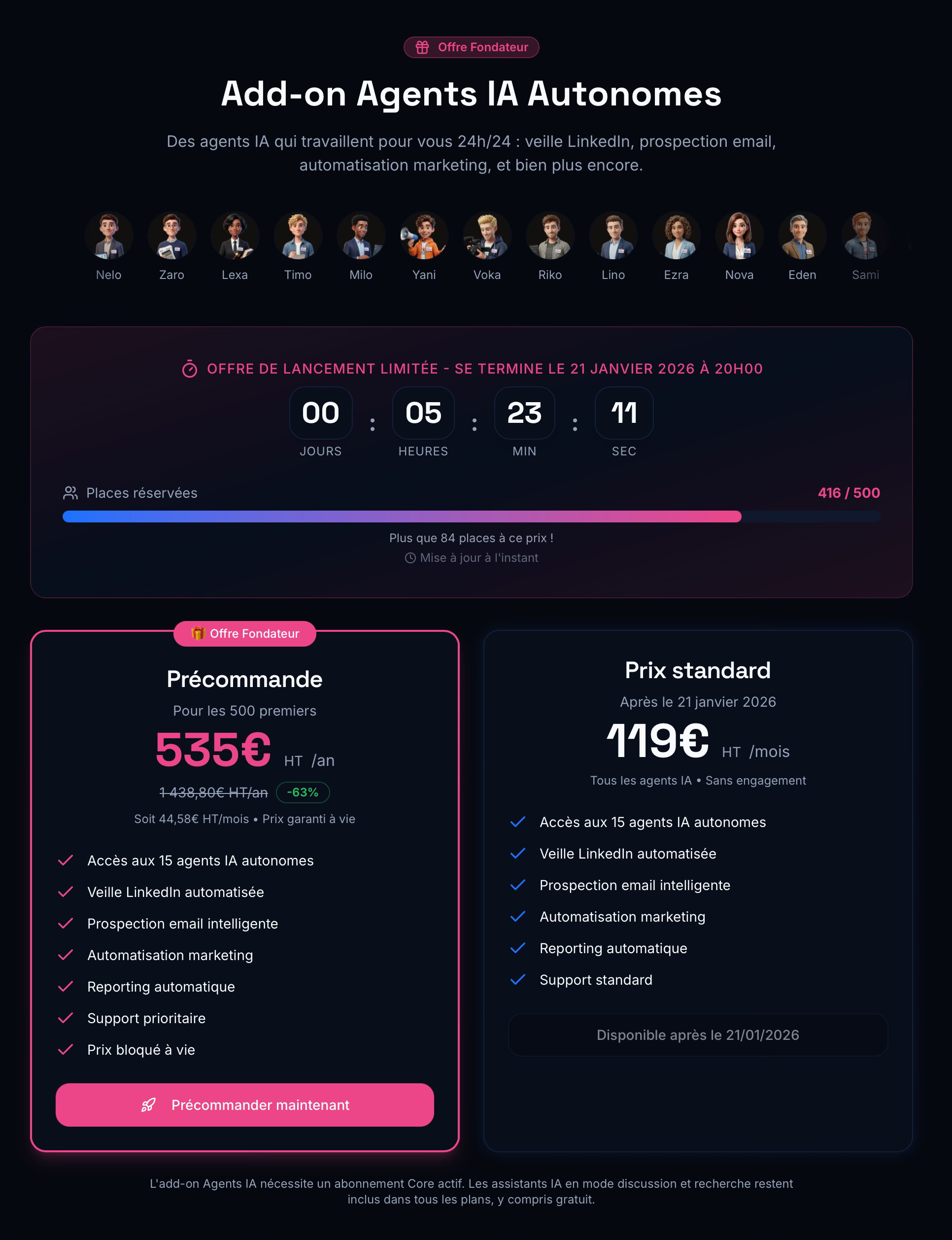 L’offre Fondateur liée aux agents IA se clôture dans moins de 4 heures.