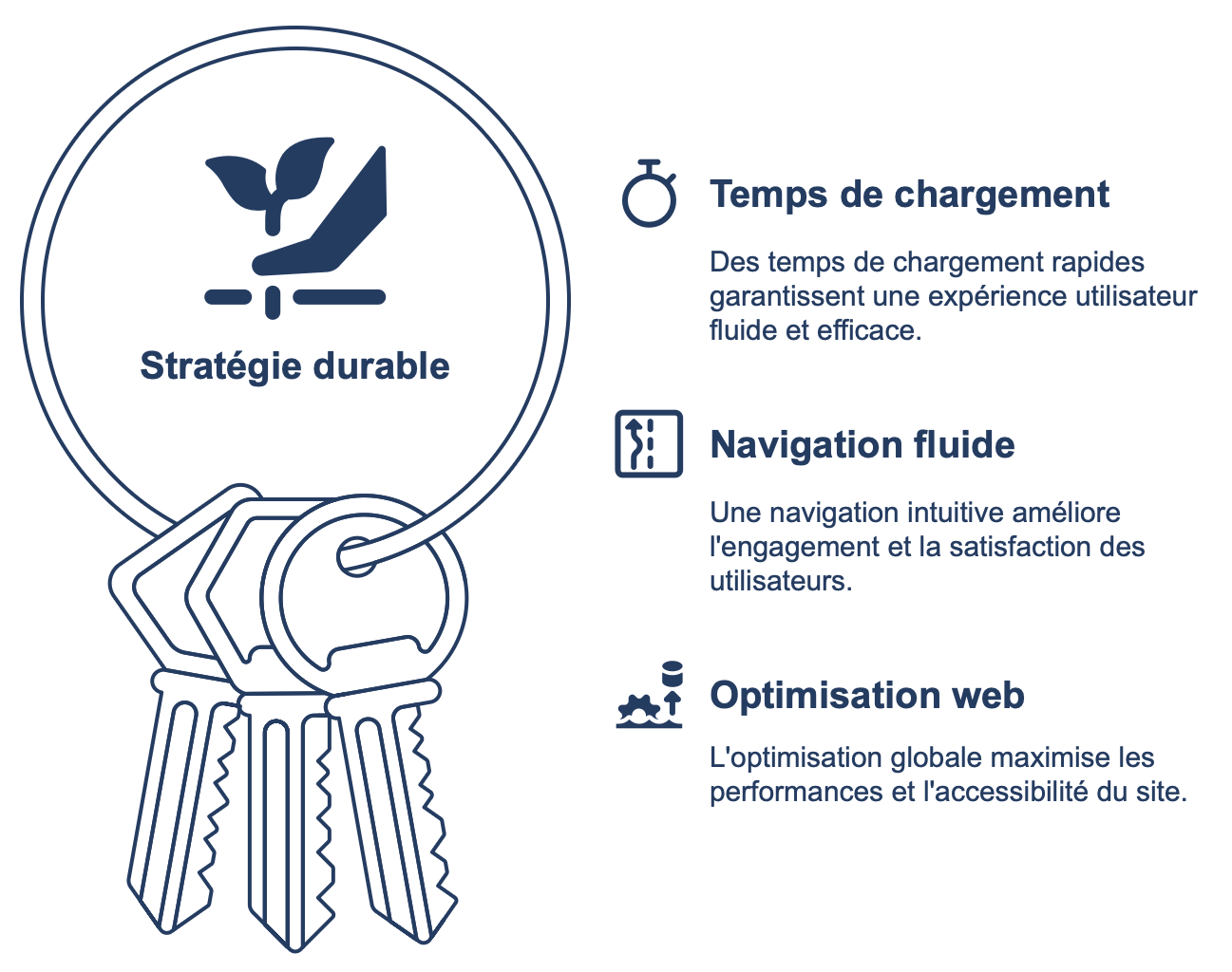 ⚙️ N'oublions pas l'aspect technique : une structure web optimisée (temps de chargement, navigation fluide) sert de fondations à toute stratégie durable.