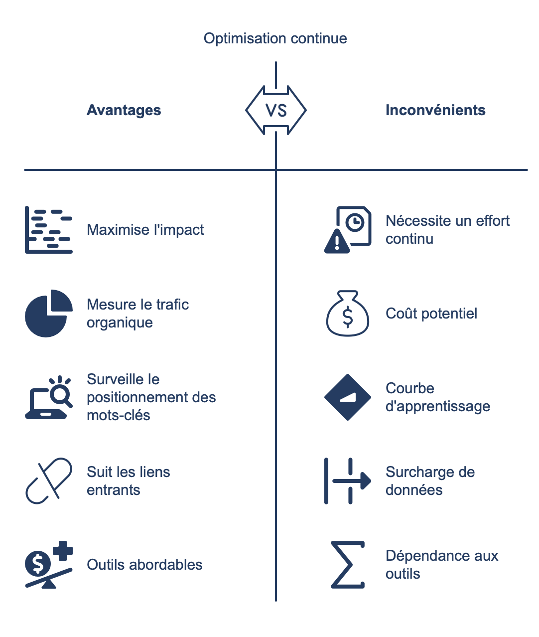 En ajustant continuellement vos pages, vous améliorez non seulement leur visibilité, mais aussi leur capacité à convertir.